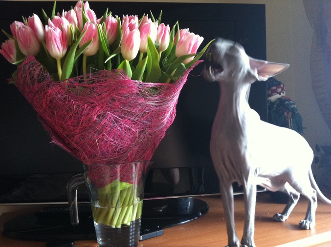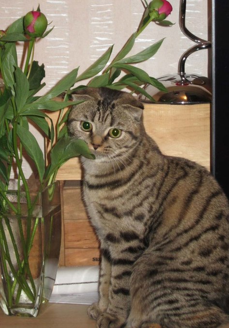 У нас после того как вазу с пионами уронила, к цветам стала равнодушна. А до этого тоже сидела, нюхала.