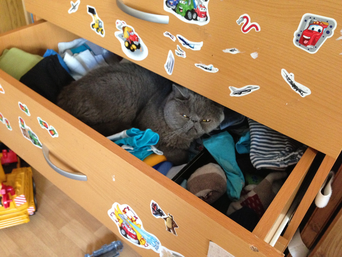 У нас это распространённая ситуация))) У кота убежища по всем шкафам, и я ему разрешаю)) Когда пропадает вдруг кот - проверяем прежде всего балкон и шкаф в прихожей. Вот, недавно папа заглянул на балкон - и не нашёл там кота. А оказалось, он просто в коробку какую-то из тамошнего хлама забился)) Достаёт его, что все тискают - вот и ищет укрытий время от времени. Иногда закрывают его на балконе - но ненадолго) Я всё время прихожу и вызволяю животное, ещё до того как запросится сам))