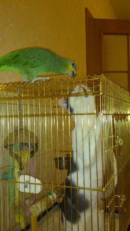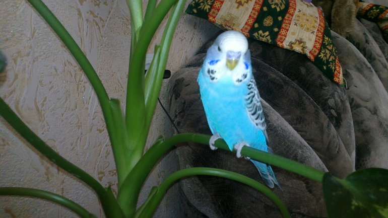 У нас волнистый выставочный попугай Чех, они крупнее простого волнистика. Брали с гнезда, в четыре месяца начал говорить свое имя "Кеша", сейчас около двадцати слов говорит - Кеша хороший, Кеша кушать хочет, Кеша привет и так далее. Иногда на ночь накрываем клетку, а так спит с нами, пока мы не встанем. Чехи более спокойнее чем простой волнистик, и менее шумный. Наш постоянно играет свей игрушкой в клетки.