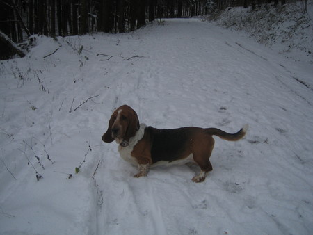 приветик!какой хорошенький песик!!! а снег...просто супер!!!