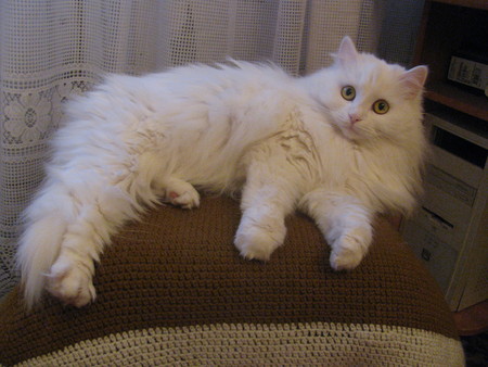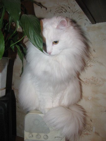 красавица! У моей свекрови белая ангорская кошка была...жуть как все вокруг своей шерстью забросала... сесть на диван нельзя было! А у нас жил персиковый перс, лохматый как лев, красивый просто слов нет...так вот тоже шерсти было от него столько, что варежки можно было раз в месяц вязать ))) От вашей красотки тоже, наверное, шерсти много? А вообще, красота требует жертв...