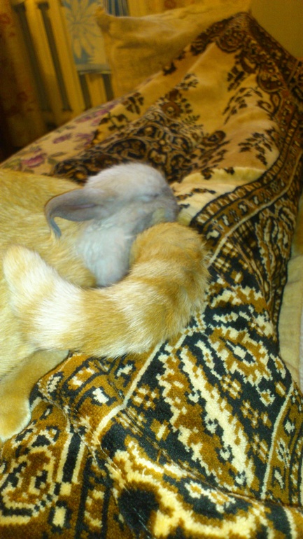 Отношения у них были очень трогательные и нежные.... Особенно у зайца к коту)....
