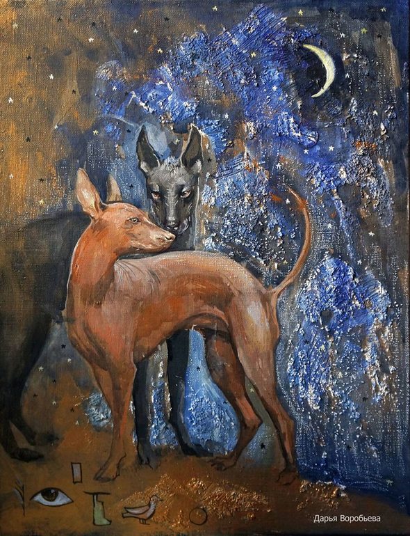 На этой картине изображены две наши любимые собаки: Армани(Мексиканская Голая собака) и Гемма(Перуанская Голая собака)