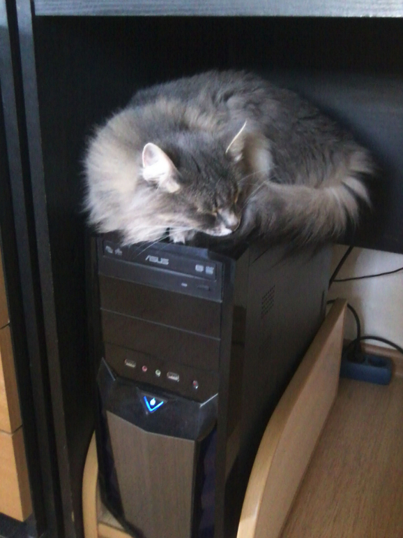 Моя тоже раньше на коленях лежала, а сейчас ей там места мало стало — перебралась на процессор, подзаряжается, как муж шутит))