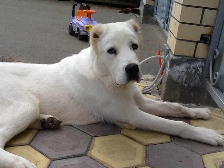 Моя собака, смотрит на меняГлазами четырех тысячелетийВ них гор — снега, Пустыни- знойный ад Тяжелый труд...Он — за людей в ответе.За их дома, отары и стада Вставал скалой против врага любогоНе страшен был ни волка жуткий войИ не клинок бандита удалогоВ его глазах — все бури смутных летВся мудрость старцев Вся любовь ребенка В Любом бою достойный дать ответС хозяином нежнее быть котенка.Что за собака смотрит на меня?И я невольно опускаю взгляд Из всех собак, с их умными глазамиСмотреть умеет так лишь " Азиат "В степи, в жару и непогоду Слегка угрюм и простоват, Работает в любое время годаСобака под названием АзиатВ степи, пустыне- там не развлечение,Там тяжкий, каждодневный труд, Поэтому частенько аксакалы Собак тех Волкодавами зовут Хоть аксакалы и не многословны,О волкодавах могут долго говорить, Где вымысел?Где правда-все условноИ только шрамы могут подтвердить Умён, логичен от природы,Не дуралей, не пустолай Есть старое название у породыПевучее, как ветер,Алабай