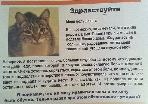 Ужас(( вот честно, я даже могу в глубине души понять иногда отстрел бродячих собак. Но коты-то чем мешают людям?