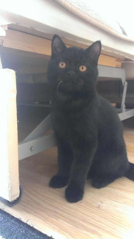Похож на британца :)Но так же можно сказать что и на шотландца страйт :)Красивый котенок :) люблю черного окраса мурлык :)