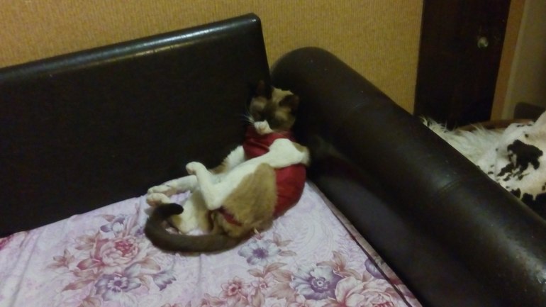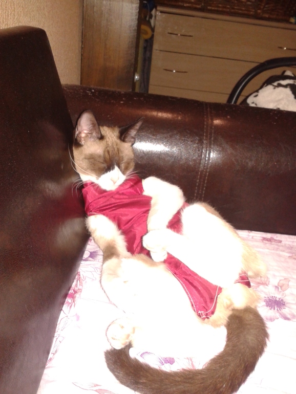 А сейчас она запрыгнула к нам на диван..муж говорит на поправку уже идет. .но как же это непривычно видеть нашу гиперативную кошку такой тихой и неподвижной. ..И это через прокол операция..а что б было если б полостную