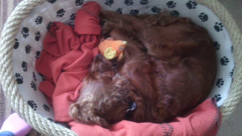 Потом даем ей игрушку мышку которая пищи если ещё затронеш . после этого она относиться к ней как к щенку. Она с ней спит, от неё не отходит, таскает ещё на диван,