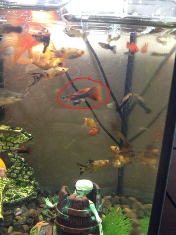 на одном фото обведен меченосец, на другом самец гуппи!