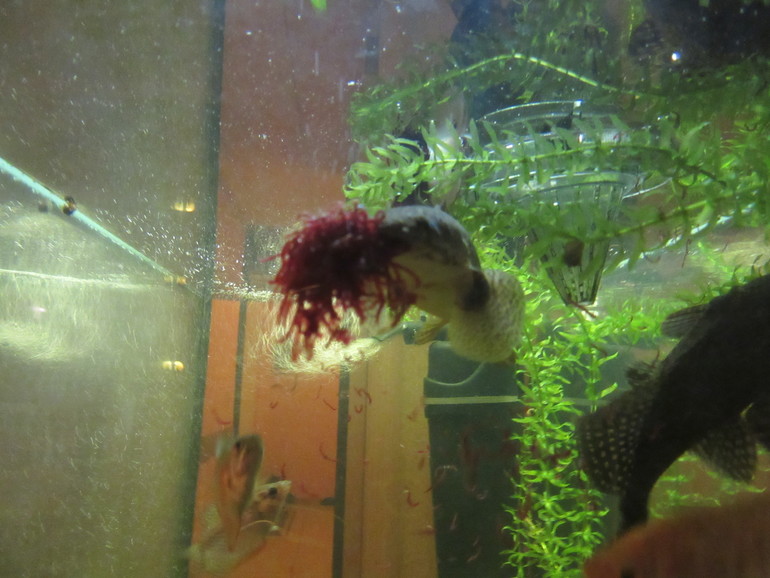 Рыбки, аквариумыВырос, страшный стал. Но, в принципе, безобидный, хотя мелких рыбок может сожрать. Дружит с желтым гурами, плавают такие, "беседуют") Забыла, как он называется, купили маленького совсем ...