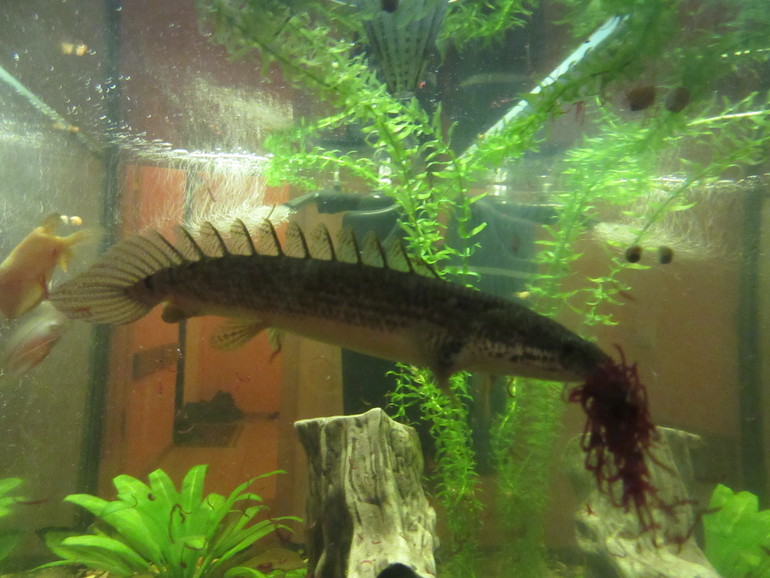 Полиптерус сенегальский хищная рыба, вырастающая в природных условиях до 70 см, в аквариумных – до 40 см. Обустройство и параметры аквариума: в связи с крупными размерами полиптеруса сенегальского ему требуется большой аквариум, как минимум от 200 л. Крышка обязательна – полиптерус склонен к «побегам»Вроде бы он