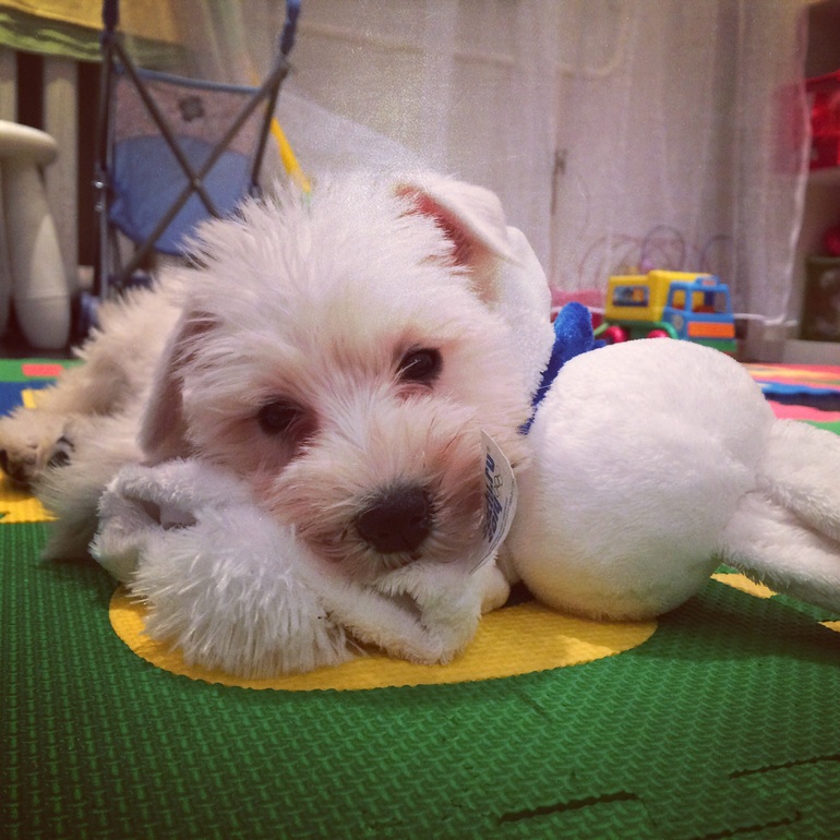 Ну а мне забот прибавилось несказанно. Только и успеваю вытирать лужи за обеими, да поднимать с пола все, что Варя кидает, а щенок может испортить или заглотить. Вот теперь я поняла, что такое уставать!!! Но о решении взять собаку не жалею ничуть. Столько веселья дома!