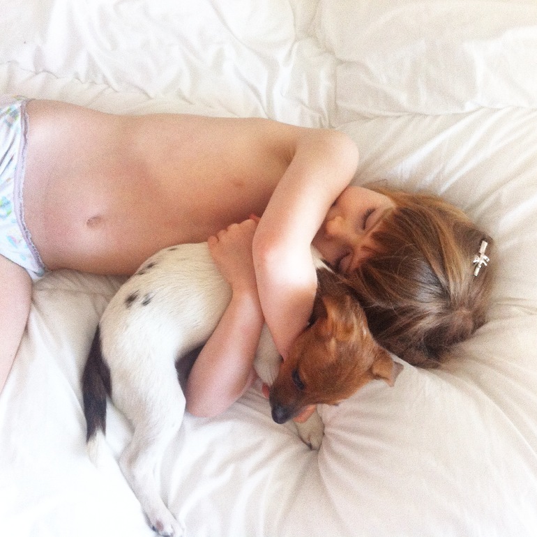 я запустила её Алисе в комнату, там запрыгнула на кровать и начала лизать нашу дочку.... Я стояла за закрытой дверью. Алиса кричала:" Мама, мама.... собака.... в окно...Дед мороз!!!!"
