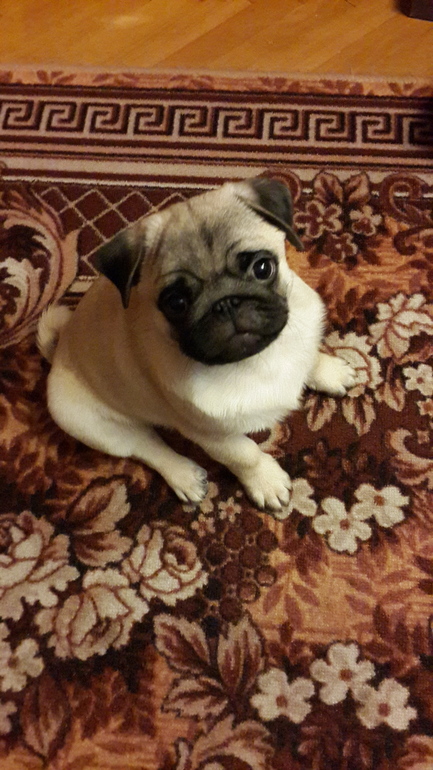 По паспорту Бриллиант, назван Банди. С хорошей родословной, клеймом. Умненький, но вот к пеленке ну никак не хочет приучаться. Где играет, там и надует. А нам еще неделю дома сидеть после прививки!