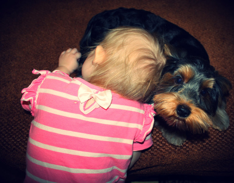 Лапушка такой! У нас доча тоже тАк прижимается к нашей йоркодевочке) сколько у вас ему?
