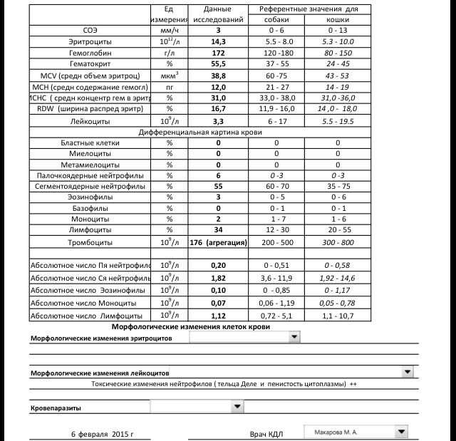 Эритроциты высоковаты и немного низкие лейкоциты. Но ничего криминального не вижу, соэ хорошее. Тромбоциты чуть ниже границы нормы,агрегация встречается всегда почти. В нашей лабе такой анализ далеко не самый плохой. А что с кисой?