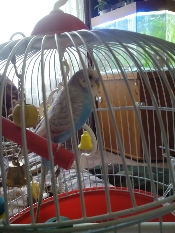 с пополнением!)) но круглую клетку не рекомендуют. в них птички грубо говоря с ума сходят. сильно на психику действует. у птицы должен быть свой угол, в котором она спит и чувствует себя защищенной. а в круглой клетке птица все время испытывает стресс. если будете эту клетку оставлять, то хотябы в плотную к стене поставьте.