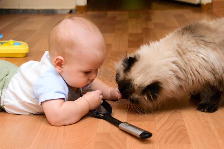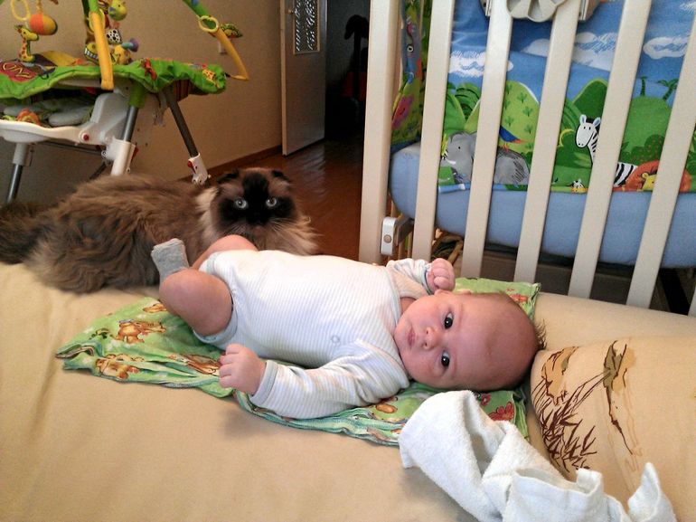 у нас дома 3 кошки и сынок 1,1года. Кошки были предметом вожделения с того самого момента как он их разгледел. Старшая кошь умная и обходит сына стороной. Может позволить ему постоять рядом, но дотронуться до себя - ни при каких обстоятельствах. Младшая дура-дурой. Позволяет делать с собой все что угодно, максимум начнет верещать если совсем уж сын ее затискает. И вот недавно появился еще пятимесячный котенок. Он сына вроде и боится, но в то же время и поиграть к нему лезет.
