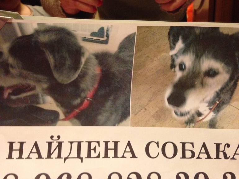 Мы сегодня пол дня искали потерявшуюся собаку! Она старенькая, не видит, не слышит и еле ходит... Все дворы облазили и ничего... Вечером уже на всякий случай прихожу в сквер и начинаю опять опрашивать людей с собаками. Никто не видел... И тут вижу огромные объявления на столбах с фото собаки!!!