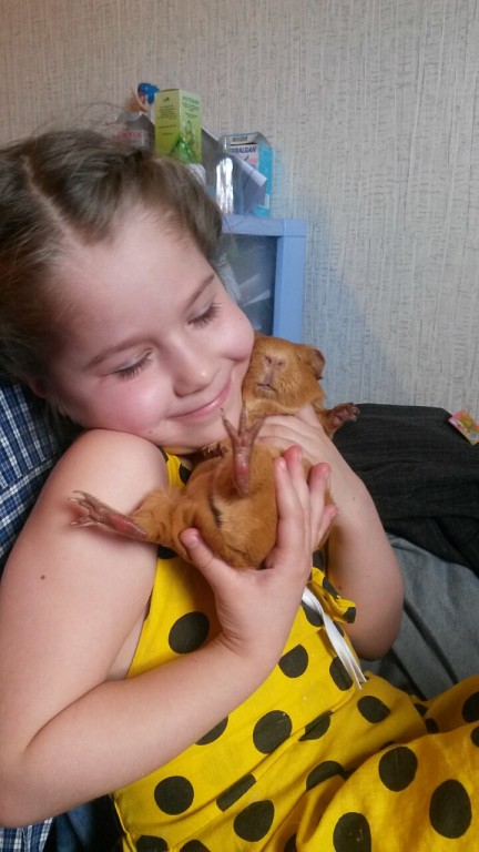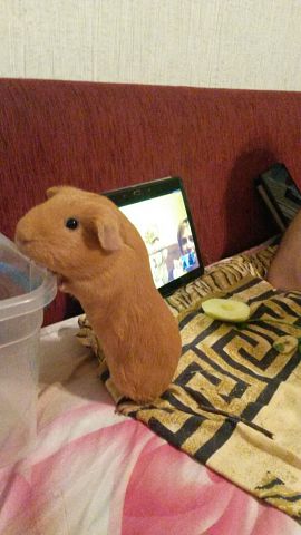 Грызуны. Болезни, прививки, советы по уходуКупили мы вторую свинку)) Приехала она к нам с Нижнего Новгорода, забрали на выставке грызунов, порода английский селф. Прелестное создание, со спокойным характером, ей 4,5 мес, назвали Лисой.