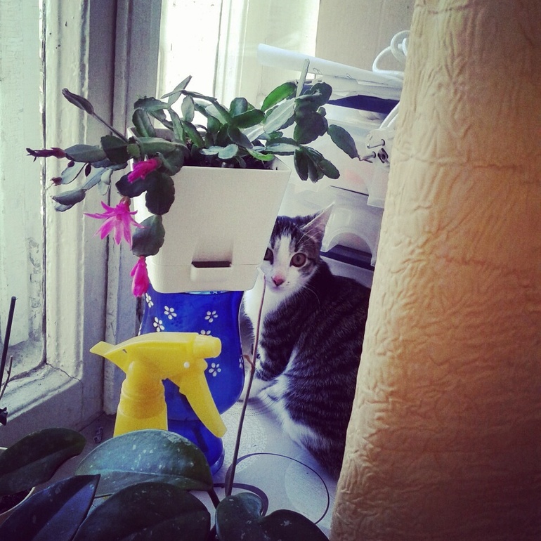 Забавные и милыеПриехала к нам на праздники маленькая киська("доча" моей свекрови). Мелкая,шустрая. Первый день всё вынюхивала. А сейчас как дома. Ей 8 месяцев. Трефаа. Ну мы больше всего беспокоились как наша Вайточка её примет.