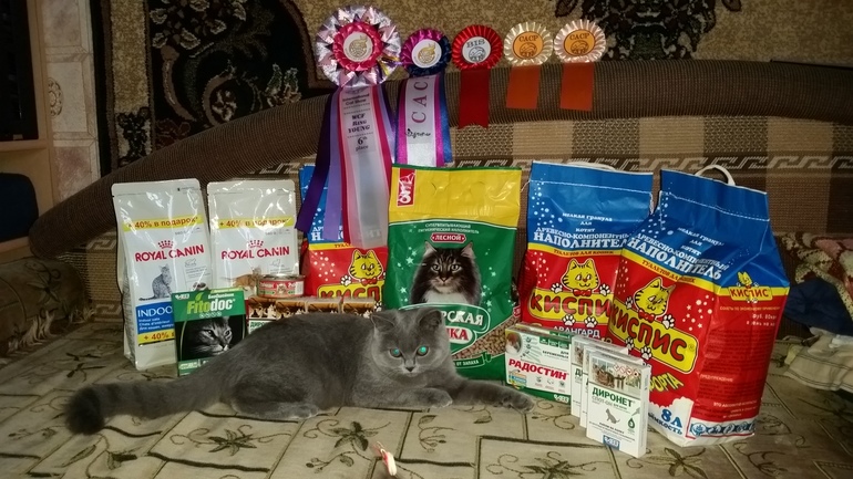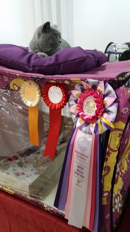 Получили 2 отличные оценки от судей Гулянской и Brouer, поучаствовали в рингах и шоу, нас признали лучшими солидами среди британов голубого окраса ;)