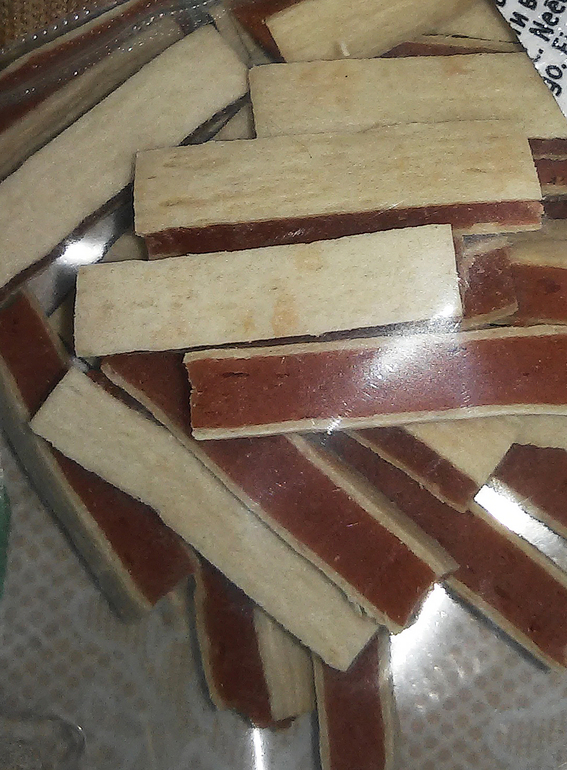 они маленькие, где-то сантиметра 3 в длину и пол сантиметра в ширину, я подумала, что Перс их легко слопает,т.к. зубы у него мощные, кусает он нас очень больно, а эта штучка ему на зуб оделась и он ни как не может её вытащить, я сняла и мелко-мелко порезала, слопал с удовольствием.