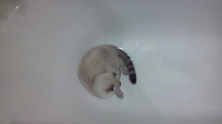 Красавица. Моя тоже не любит на руках сидеть, и в ванну ходит с нами, пока мы умываемся она ждет, после нас пьет из под крана холодную водичку.