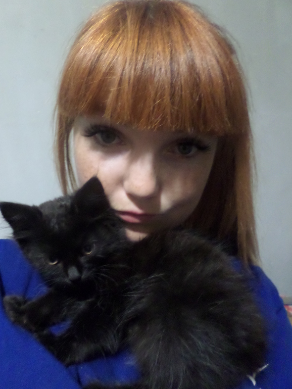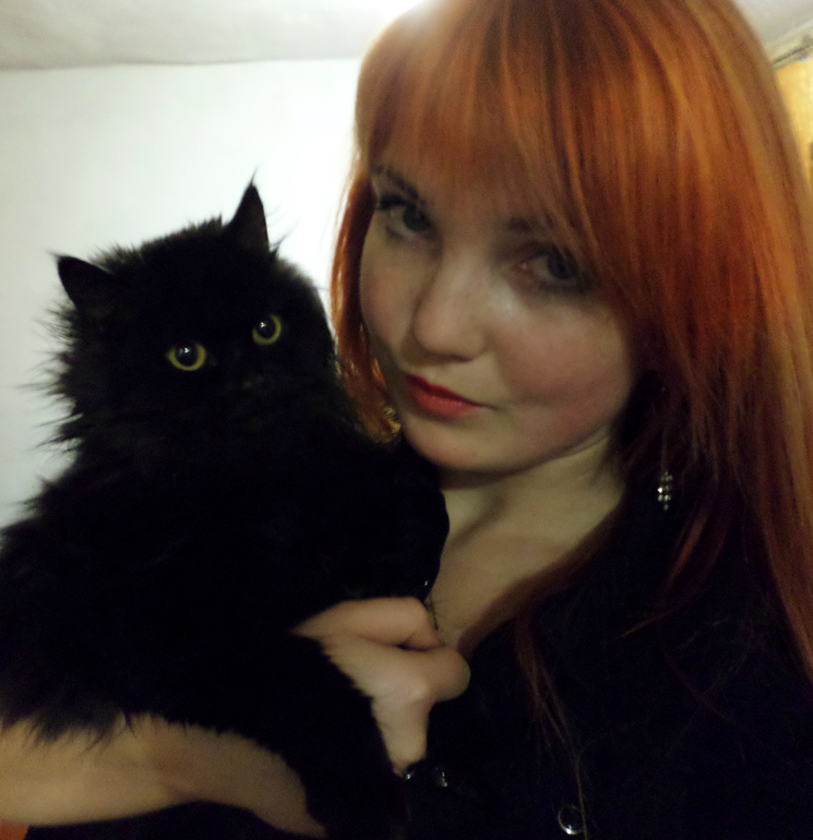 Кошки любят так смотреть в одну точку.) У меня кошка так тоже делает. У вас фотография получилась, прям как постер из фильма про мистику.) Вы рыжая и кошка чёрная.) Класс!