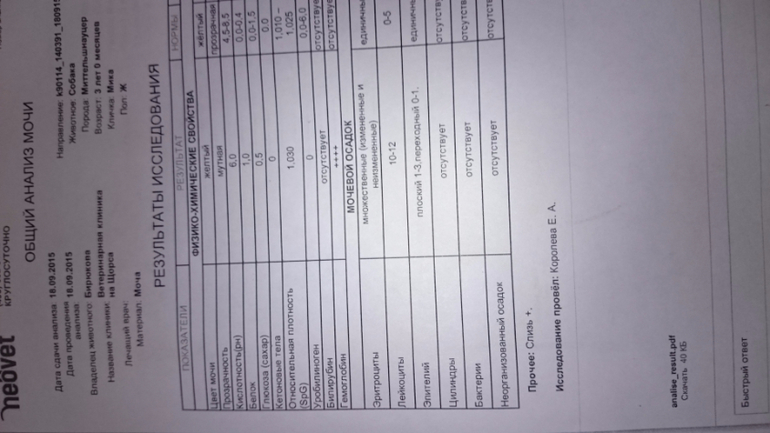 А Бак. посев мочи с чувствительностью к антибиотику нет возможности сдать? Чтобы уж точно давать тот антибиотик, который действует. Странно, что Вашей собаке его не назначили. Людям монурал хорошо помогает, но его рекомендовано не однократно давать (но Вашему врачу, конечно, виднее).