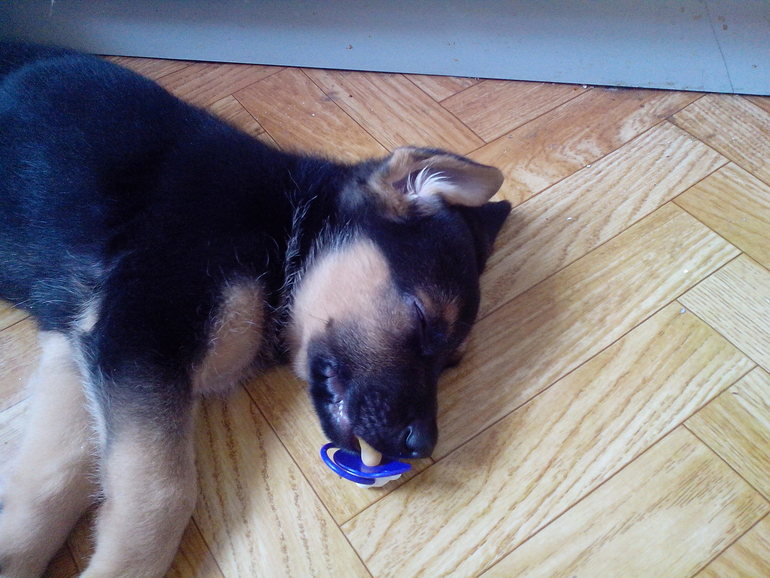 Тут ему недель 8, помог сыночку отучиться от соски