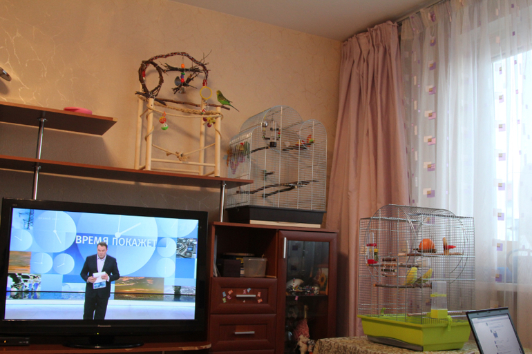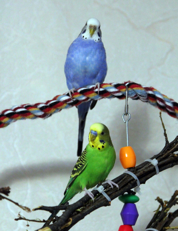 ПтицыТеперь у нас маленькая стайка, Петрушка и Сонька годовалые и 2-х месячные малыши Проша и Тася. Сегодня семейки переехали в просторные клетки, старшие в Элизу, младшая пара в Эмму.