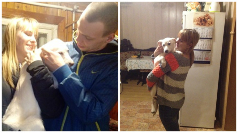 Слева, фотография "первое знакомство", справа "уже дома" на ручках