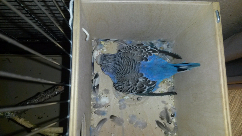 В декабре Петруше и Соне исполнился год, да и она уже давно просилась на гнездо. Повесили, Соня начала активно исследовать , наводить шухер в гнезде. Потом начались ухаживания и сам процесс любви)) В итоге в январе Соня снесла 4 яйца. Одно изначально мне показалось с желтым оттенком. ну думаю, наверное 3 оплода и 1 пустое.