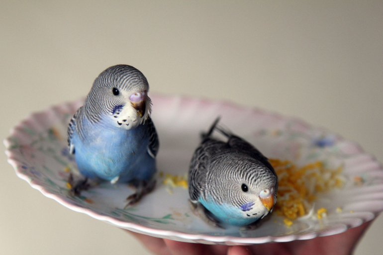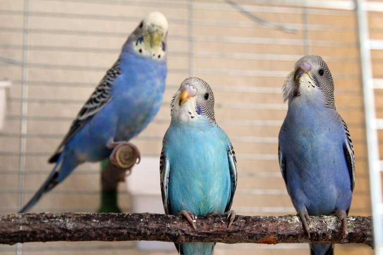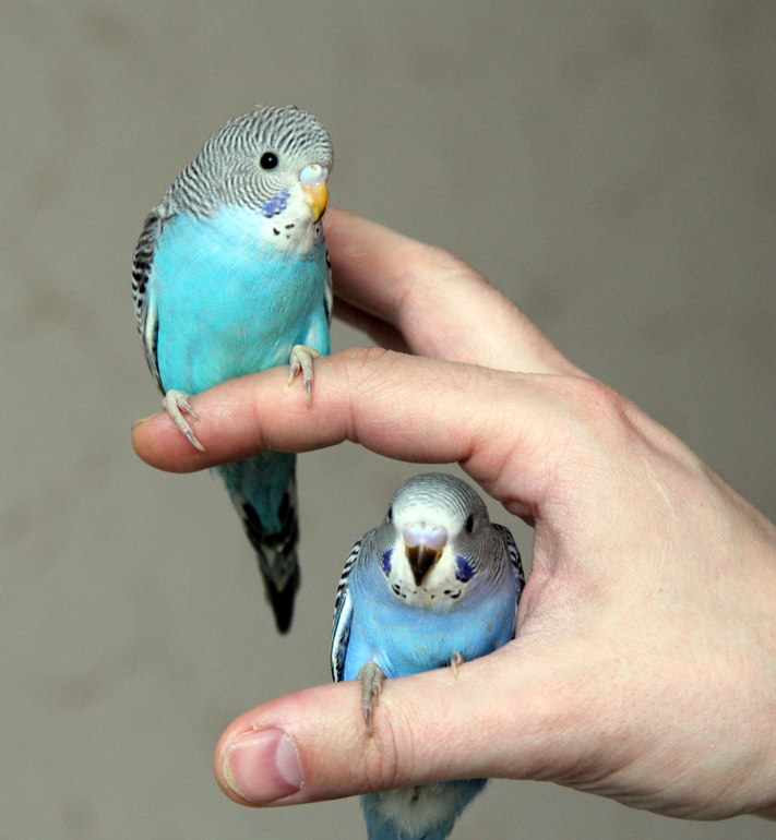 Немного их пофоткали. Бирюзовая со светлым клювом-девочка, синий с черным клювом- мальчишка