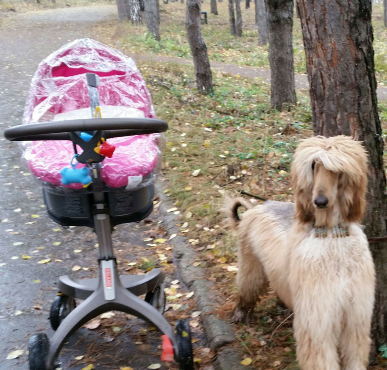 Еще мои питомцы очень помогают мне на прогулке. Например я могу оставить ребенка спать в коляске. И не заглядывать туда ежесекундно, проверяя спит ребенок или проснулся. Собаки слышат лучше нас.и стоит дочери только проснуться, как они начинают беспокоится показывая всем своим видом .что, что то не так.