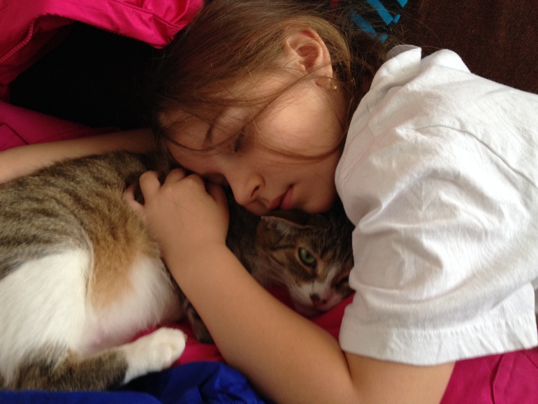 Какая она красавица у тебя! А кот судя по мордашке просто ждет пока Наташа проснется, боится шолохнуться)) Классный кот!