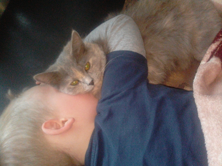 НО.... сын ее очень любит и дома с ней практически не расстается, обнимает , засыпает теперь только с Машкой. Я ему рассказала, что целовать кошку нельзя , она попу лижеи и все такое , он теперь за стол не сядет, пока его не протру, НО,,,, он ее целый день целует в шейку, головку, иногда он ее хочет обнять, а она лапами докасается до его губ.... Ну короче оградить невозможно.