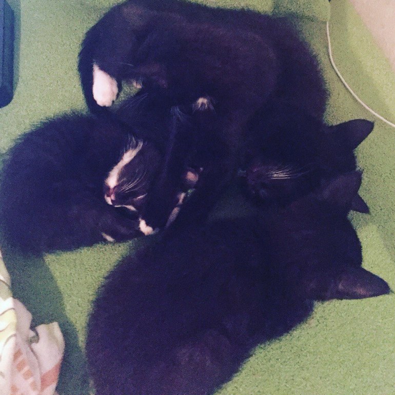 Они ждут своего хозяина (бесплатно)Ну пристроить надо что говорить! Подкинули под балкон 7 штук! 4 помладше и 3 постарше) Все черненькие! Хотдят в лоток-явно что кто-то из дома выкинул(((( У меня щас съемная однушка с мейнкуном и британкой и кроликов-оставить себе конечно не могу! На время то без проблем но 7 котов в доме перебор! Одного оставим а 6 надо пристроить! 3 девочки и 1 мальчик! (еще двоих малышей пока взяла соседка-не знаю кто они но тоже черныши) Ласковые...спят с нами ...урчат! Проблем нет!