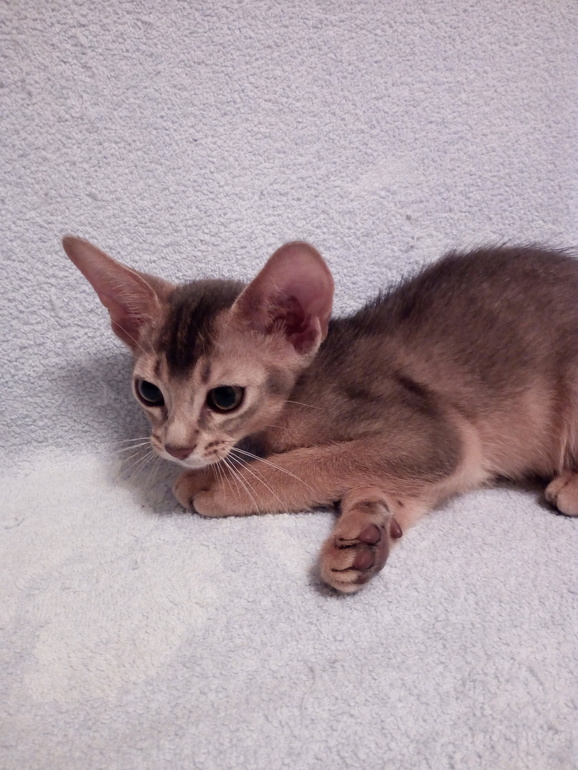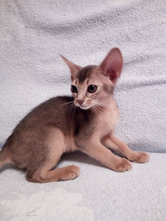 И между тем, это прекрасный породный представитель. Мне все в нем нравится. Он станет потрясающим абиссинским котом. Сейчас уже меняется шерсть, детский пушок выпадает. Скоро будет чудесная прилегающая шерсть. Вот он - абиссинец, какой должен быть!