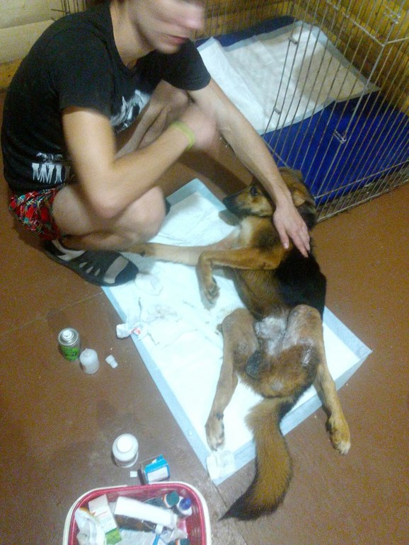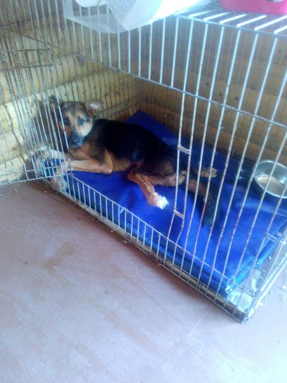 После Новогодних праздников сотрудники МЧС привезли молодого подростка к дверям Муниципального приюта, мальчишка встать на лапы не мог. Волонтеры сразу повезли в ветклинику, диагноз после обследования МРТ был ужасен - перелом позвоночника в двух местах, разрыв спинного мозга. Все хирурги с которыми мы консультировались подтвердили, что операция бесполезна, Шанс ходить не будет.