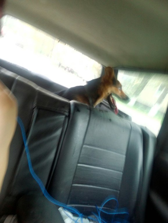 Он обожает путешествовать))) с удовольствием и интересом смотрит в окно)))