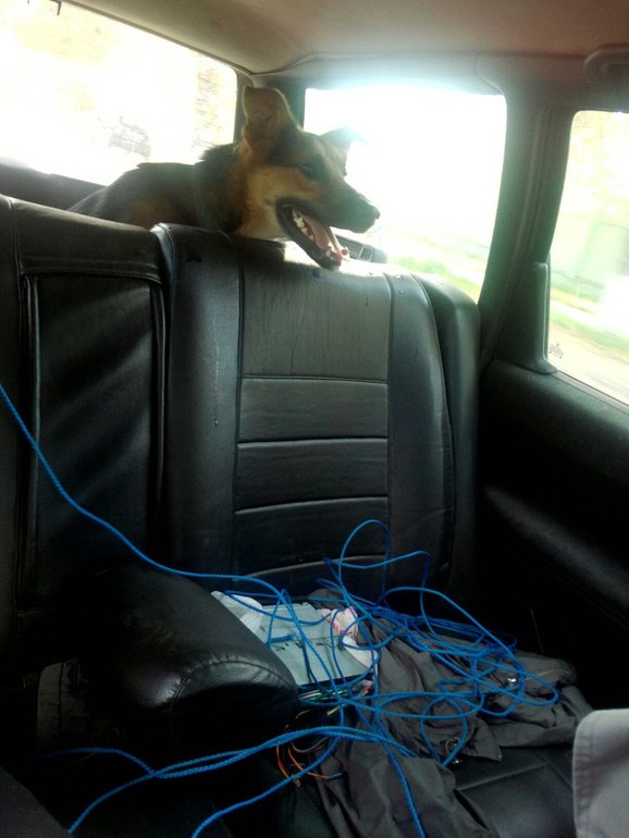 Как только удается заполучить в рабство мужа))) мы едем с Шансом в лес к озеру)))