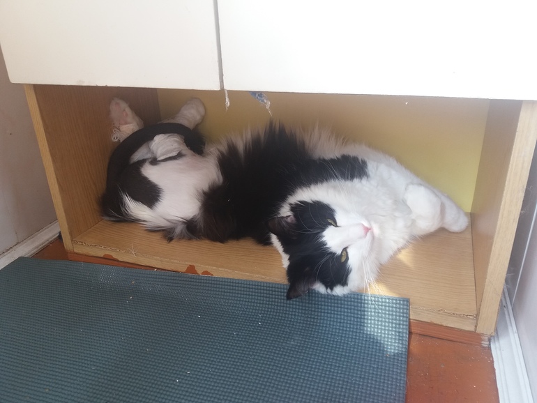 Кстати, живет уже не в шкафу и без воротника. Так что жизнь налаживается😊