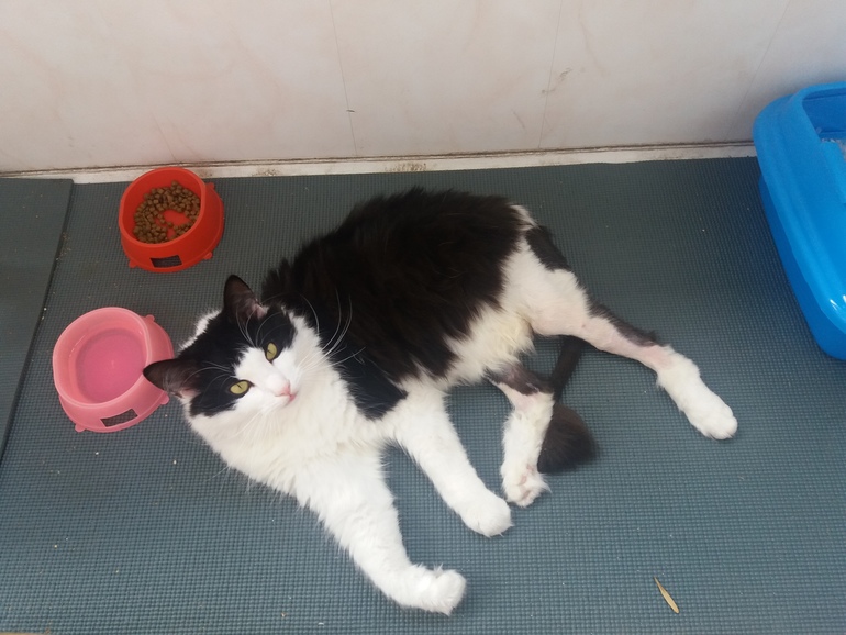 В общем было много всего, в том числе сильный укус моей руки. В ветеринарке стали уже за "своих". Но сейчас товарищ Том конкретно пошел на поправку и уже на финишной прямой. Осталось всего 10 дней походить. Он, кстати, теперь немного ходит сам. Ходит в лоток, хорошо кушает, какает регулярно.
