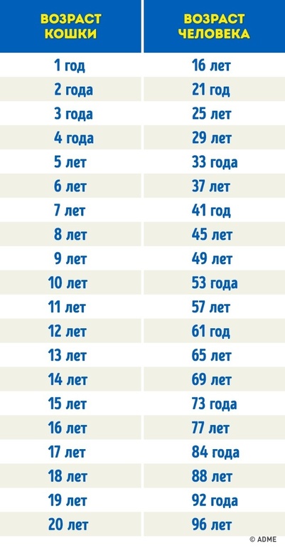 Узнать, как возраст тех, кто гуляет сам по себе, соотносится с человеческим, вы сможете из таблицы.