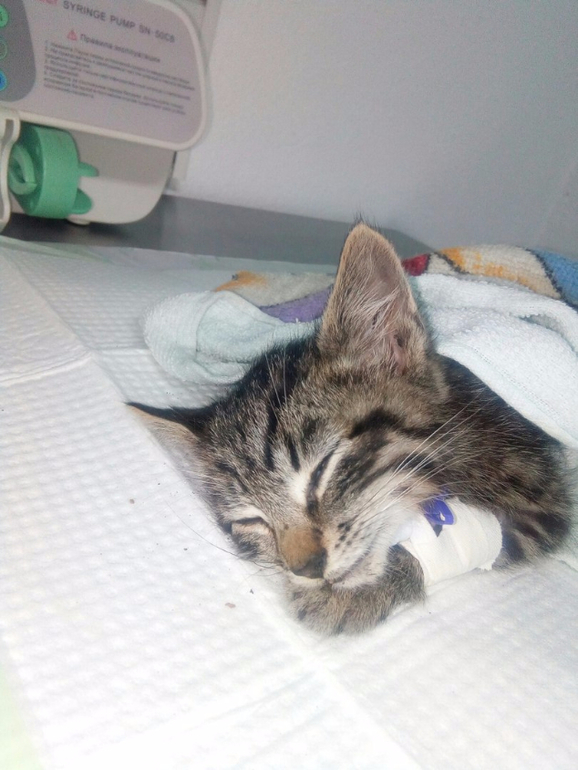 Девули уехали, остались дома на пристройство мы с мамой Пумой, кисой-подростком ну и своими хвостами. "Отдохну немножко!!!!" - думаю я... И в тот же день звонит племяшка мужа. Во двор подкинули умирающего котенка. Около 1,5 мес. Трясётся, весь мокрый, раздутый живот, даже сил встать у него нет, практически не реагирует ни на что. Понос :( У меня всё опустилось, в голове панлейкопения...да много чего там может быть! У племяшки экзамены в школе. Положила котенка в коробку и занесла в подъезд. Я давай быро кидать по группам ФБ и ВК, кто может помочь в Истре. Откровенно говоря, думала, что помощи не будет. Но отозвался молодой человек, который уже через час забрал котенка и отнёс в клинику. Правда, клиника не сделала ровным счётом ничего, кроме того, как содрала денег. Котенка парень забрал домой. А какие действия дальше неизвестно! Клиника им с собой дала всего лишь баночку для ан. кала. Кошмааар!!!