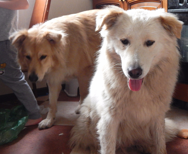 Вот такой лапотун - просто полярный лис! Уже помылись и проглистогонились. На вид ухоженный, а под шерстью колтунишки и репейник. Очень тяжело вычёсываются.