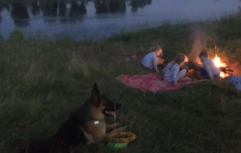 У нас побережье реки большое и мы специально подальше ушли от основного пляжа ( прямо очень далеко) И парнишки эти сначала увидели что мы две девчонки сидим с детьми ))))) Потом Фиму увидели, и видимо она их не очень напугала. И только когда они спешились рядом с мотоциклов она начала рычать и на её охрану пришёл Форвард. И тут парнишки совсем сникли с идеей остаться )))) А когда ещё Форвард стал охранять активно, то быстро уехали.